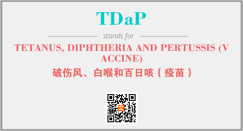 英文缩略词“TDaP”经常作为“TETANUS, DIPHTHERIA AND PERTUSSIS (VACCINE)”的英文缩写来使用,中文表示:“破伤风、白喉和百日咳(疫苗)”。本文将详细介绍英文缩写词TDaP所代表英文单词,其对应的中文拼音、详细解释以及在英语中的流行度。此外,还有关于缩略词TDaP的分类、应用领域及相关应用示例等。