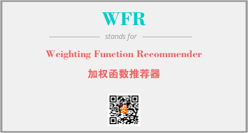 上述内容是“Weighting Function Recommender”作为“WFR”的缩写,解释为“加权函数推荐器”时的信息,以及英文缩略词WFR所代表的英文单词,其对应的中文拼音、详细解释以及在英文中的流行度和相关分类、应用领域及应用示例等。