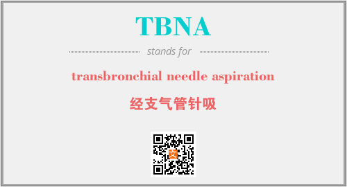 上述内容是“transbronchial needle aspiration”作为“TBNA”的缩写,解释为“经支气管针吸”时的信息,以及英文缩略词TBNA所代表的英文单词,其对应的中文拼音、详细解释以及在英文中的流行度和相关分类、应用领域及应用示例等。