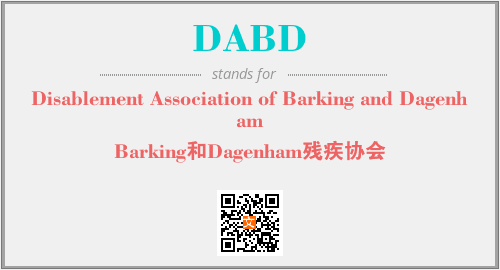 上述内容是“Disablement Association of Barking and Dagenham”作为“DABD”的缩写,解释为“Barking和Dagenham残疾协会”时的信息,以及英文缩略词DABD所代表的英文单词,其对应的中文拼音、详细解释以及在英文中的流行度和相关分类、应用领域及应用示例等。
