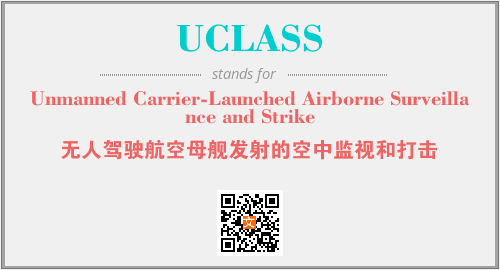 上述内容是“Unmanned Carrier-Launched Airborne Surveillance and Strike”作为“UCLASS”的缩写,解释为“无人驾驶航空母舰发射的空中监视和打击”时的信息,以及英文缩略词UCLASS所代表的英文单词,其对应的中文拼音、详细解释以及在英文中的流行度和相关分类、应用领域及应用示例等。