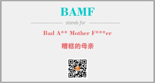 以上为Bad A** Mother F***er英文缩略词BAMF的中文解释,以及该英文缩写在英语的流行度、分类和应用领域方面的信息。