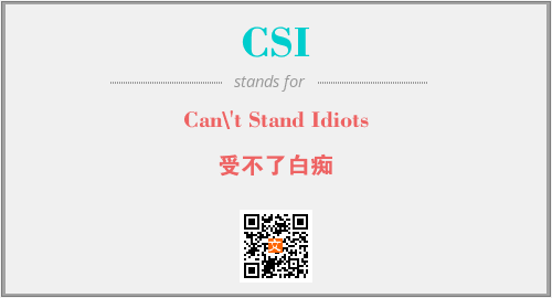 以上为Can\'t Stand Idiots英文缩略词CSI的中文解释,以及该英文缩写在英语的流行度、分类和应用领域方面的信息。