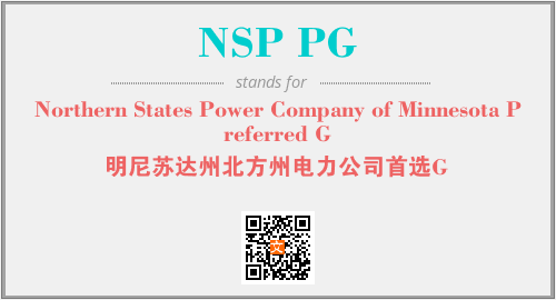 上述内容是“Northern States Power Company of Minnesota Preferred G”作为“NSP PG”的缩写,解释为“明尼苏达州北方州电力公司首选G”时的信息,以及英文缩略词NSP PG所代表的英文单词,其对应的中文拼音、详细解释以及在英文中的流行度和相关分类、应用领域及应用示例等。