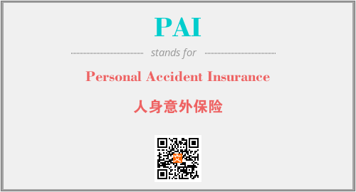 上述内容是“Personal Accident Insurance”作为“PAI”的缩写,解释为“人身意外保险”时的信息,以及英文缩略词PAI所代表的英文单词,其对应的中文拼音、详细解释以及在英文中的流行度和相关分类、应用领域及应用示例等。