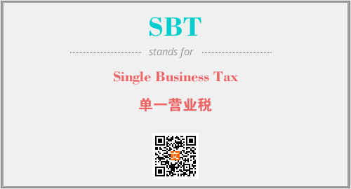 英文缩略词“SBT”经常作为“Single Business Tax”的英文缩写来使用,中文表示:“单一营业税”。本文将详细介绍英文缩写词SBT所代表英文单词,其对应的中文拼音、详细解释以及在英语中的流行度。此外,还有关于缩略词SBT的分类、应用领域及相关应用示例等。