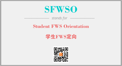 英文缩略词“SFWSO”经常作为“Student FWS Orientation”的英文缩写来使用,中文表示:“学生FWS定向”。本文将详细介绍英文缩写词SFWSO所代表英文单词,其对应的中文拼音、详细解释以及在英语中的流行度。此外,还有关于缩略词SFWSO的分类、应用领域及相关应用示例等。