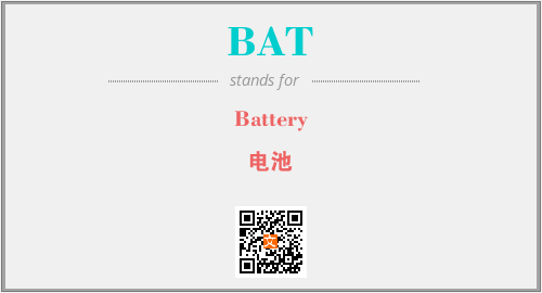 英文缩略词“BAT”经常作为“Battery”的英文缩写来使用,中文表示:“电池”。本文将详细介绍英文缩写词BAT所代表英文单词,其对应的中文拼音、详细解释以及在英语中的流行度。此外,还有关于缩略词BAT的分类、应用领域及相关应用示例等。