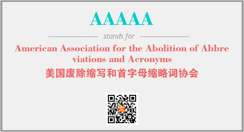 英文缩略词“AAAAA”经常作为“American Association for the Abolition of Abbreviations and Acronyms”的英文缩写来使用,中文表示:“美国废除缩写和首字母缩略词协会”。本文将详细介绍英文缩写词AAAAA所代表英文单词,其对应的中文拼音、详细解释以及在英语中的流行度。此外,还有关于缩略词AAAAA的分类、应用领域及相关应用示例等。