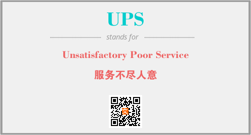 上述内容是“Unsatisfactory Poor Service”作为“UPS”的缩写,解释为“服务不尽人意”时的信息,以及英文缩略词UPS所代表的英文单词,其对应的中文拼音、详细解释以及在英文中的流行度和相关分类、应用领域及应用示例等。