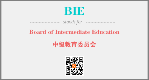 上述内容是“Board of Intermediate Education”作为“BIE”的缩写,解释为“中级教育委员会”时的信息,以及英文缩略词BIE所代表的英文单词,其对应的中文拼音、详细解释以及在英文中的流行度和相关分类、应用领域及应用示例等。
