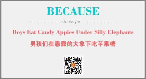 以上为Boys Eat Candy Apples Under Silly Elephants英文缩略词BECAUSE的中文解释,以及该英文缩写在英语的流行度、分类和应用领域方面的信息。