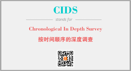 上述内容是“Chronological In Depth Survey”作为“CIDS”的缩写,解释为“按时间顺序的深度调查”时的信息,以及英文缩略词CIDS所代表的英文单词,其对应的中文拼音、详细解释以及在英文中的流行度和相关分类、应用领域及应用示例等。