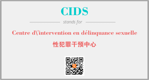 以上为Centre d\'intervention en délinquance sexuelle英文缩略词CIDS的中文解释,以及该英文缩写在英语的流行度、分类和应用领域方面的信息。
