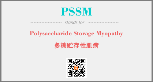 英文缩略词“PSSM”经常作为“Polysaccharide Storage Myopathy”的英文缩写来使用,中文表示:“多糖贮存性肌病”。本文将详细介绍英文缩写词PSSM所代表英文单词,其对应的中文拼音、详细解释以及在英语中的流行度。此外,还有关于缩略词PSSM的分类、应用领域及相关应用示例等。