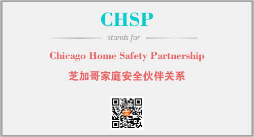 上述内容是“Chicago Home Safety Partnership”作为“CHSP”的缩写,解释为“芝加哥家庭安全伙伴关系”时的信息,以及英文缩略词CHSP所代表的英文单词,其对应的中文拼音、详细解释以及在英文中的流行度和相关分类、应用领域及应用示例等。