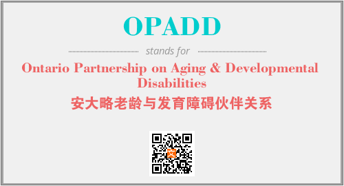 以上为Ontario Partnership on Aging & Developmental Disabilities英文缩略词OPADD的中文解释,以及该英文缩写在英语的流行度、分类和应用领域方面的信息。