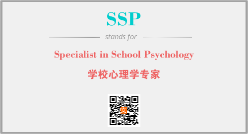 上述内容是“Specialist in School Psychology”作为“SSP”的缩写,解释为“学校心理学专家”时的信息,以及英文缩略词SSP所代表的英文单词,其对应的中文拼音、详细解释以及在英文中的流行度和相关分类、应用领域及应用示例等。