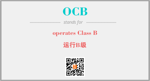 英文缩略词“OCB”经常作为“operates Class B”的英文缩写来使用,中文表示:“运行B级”。本文将详细介绍英文缩写词OCB所代表英文单词,其对应的中文拼音、详细解释以及在英语中的流行度。此外,还有关于缩略词OCB的分类、应用领域及相关应用示例等。