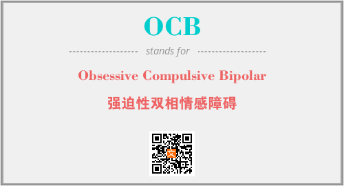 英文缩略词“OCB”经常作为“Obsessive Compulsive Bipolar”的英文缩写来使用,中文表示:“强迫性双相情感障碍”。本文将详细介绍英文缩写词OCB所代表英文单词,其对应的中文拼音、详细解释以及在英语中的流行度。此外,还有关于缩略词OCB的分类、应用领域及相关应用示例等。
