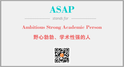 上述内容是“Ambitious Strong Academic Person”作为“ASAP”的缩写,解释为“野心勃勃、学术性强的人”时的信息,以及英文缩略词ASAP所代表的英文单词,其对应的中文拼音、详细解释以及在英文中的流行度和相关分类、应用领域及应用示例等。