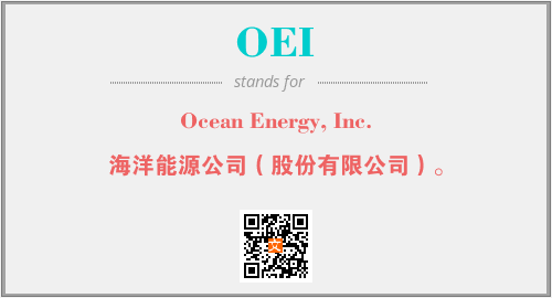 上述内容是“Ocean Energy, Inc.”作为“OEI”的缩写,解释为“海洋能源公司(股份有限公司)。”时的信息,以及英文缩略词OEI所代表的英文单词,其对应的中文拼音、详细解释以及在英文中的流行度和相关分类、应用领域及应用示例等。