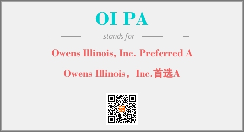 上述内容是“Owens Illinois, Inc. Preferred A”作为“OI PA”的缩写,解释为“Owens Illinois,Inc.首选A”时的信息,以及英文缩略词OI PA所代表的英文单词,其对应的中文拼音、详细解释以及在英文中的流行度和相关分类、应用领域及应用示例等。