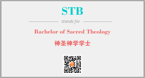 上述内容是“Bachelor of Sacred Theology”作为“STB”的缩写,解释为“神圣神学学士”时的信息,以及英文缩略词STB所代表的英文单词,其对应的中文拼音、详细解释以及在英文中的流行度和相关分类、应用领域及应用示例等。
