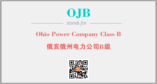 上述内容是“Ohio Power Company Class B”作为“OJB”的缩写,解释为“俄亥俄州电力公司B级”时的信息,以及英文缩略词OJB所代表的英文单词,其对应的中文拼音、详细解释以及在英文中的流行度和相关分类、应用领域及应用示例等。