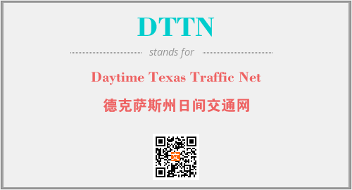 上述内容是“Daytime Texas Traffic Net”作为“DTTN”的缩写,解释为“德克萨斯州日间交通网”时的信息,以及英文缩略词DTTN所代表的英文单词,其对应的中文拼音、详细解释以及在英文中的流行度和相关分类、应用领域及应用示例等。