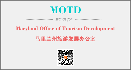 上述内容是“Maryland Office of Tourism Development”作为“MOTD”的缩写,解释为“马里兰州旅游发展办公室”时的信息,以及英文缩略词MOTD所代表的英文单词,其对应的中文拼音、详细解释以及在英文中的流行度和相关分类、应用领域及应用示例等。