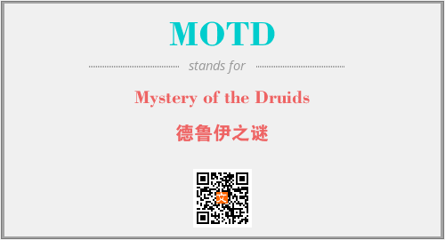 英文缩略词“MOTD”经常作为“Mystery of the Druids”的英文缩写来使用,中文表示:“德鲁伊之谜”。本文将详细介绍英文缩写词MOTD所代表英文单词,其对应的中文拼音、详细解释以及在英语中的流行度。此外,还有关于缩略词MOTD的分类、应用领域及相关应用示例等。