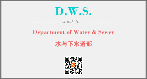 上述内容是“Department of Water & Sewer”作为“D.W.S.”的缩写,解释为“水与下水道部”时的信息,以及英文缩略词D.W.S.所代表的英文单词,其对应的中文拼音、详细解释以及在英文中的流行度和相关分类、应用领域及应用示例等。