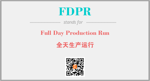 英文缩略词“FDPR”经常作为“Full Day Production Run”的英文缩写来使用,中文表示:“全天生产运行”。本文将详细介绍英文缩写词FDPR所代表英文单词,其对应的中文拼音、详细解释以及在英语中的流行度。此外,还有关于缩略词FDPR的分类、应用领域及相关应用示例等。