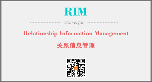 上述内容是“Relationship Information Management”作为“RIM”的缩写,解释为“关系信息管理”时的信息,以及英文缩略词RIM所代表的英文单词,其对应的中文拼音、详细解释以及在英文中的流行度和相关分类、应用领域及应用示例等。