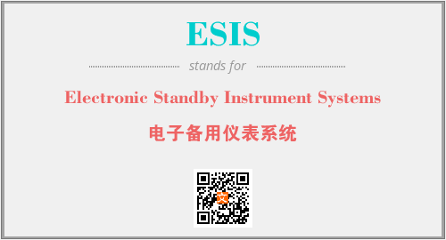 上述内容是“Electronic Standby Instrument Systems”作为“ESIS”的缩写,解释为“电子备用仪表系统”时的信息,以及英文缩略词ESIS所代表的英文单词,其对应的中文拼音、详细解释以及在英文中的流行度和相关分类、应用领域及应用示例等。