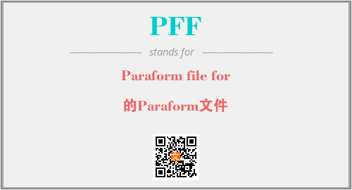 英文缩略词“PFF”经常作为“Paraform file for”的英文缩写来使用,中文表示:“的Paraform文件”。本文将详细介绍英文缩写词PFF所代表英文单词,其对应的中文拼音、详细解释以及在英语中的流行度。此外,还有关于缩略词PFF的分类、应用领域及相关应用示例等。