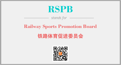 英文缩略词“RSPB”经常作为“Railway Sports Promotion Board”的英文缩写来使用,中文表示:“铁路体育促进委员会”。本文将详细介绍英文缩写词RSPB所代表英文单词,其对应的中文拼音、详细解释以及在英语中的流行度。此外,还有关于缩略词RSPB的分类、应用领域及相关应用示例等。