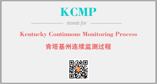 上述内容是“Kentucky Continuous Monitoring Process”作为“KCMP”的缩写,解释为“肯塔基州连续监测过程”时的信息,以及英文缩略词KCMP所代表的英文单词,其对应的中文拼音、详细解释以及在英文中的流行度和相关分类、应用领域及应用示例等。