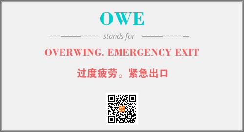 上述内容是“OVERWING. EMERGENCY EXIT”作为“OWE”的缩写,解释为“过度疲劳。紧急出口”时的信息,以及英文缩略词OWE所代表的英文单词,其对应的中文拼音、详细解释以及在英文中的流行度和相关分类、应用领域及应用示例等。