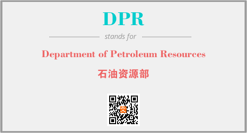 上述内容是“Department of Petroleum Resources”作为“DPR”的缩写,解释为“石油资源部”时的信息,以及英文缩略词DPR所代表的英文单词,其对应的中文拼音、详细解释以及在英文中的流行度和相关分类、应用领域及应用示例等。