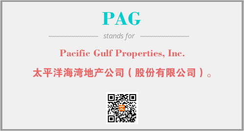 上述内容是“Pacific Gulf Properties, Inc.”作为“PAG”的缩写,解释为“太平洋海湾地产公司(股份有限公司)。”时的信息,以及英文缩略词PAG所代表的英文单词,其对应的中文拼音、详细解释以及在英文中的流行度和相关分类、应用领域及应用示例等。