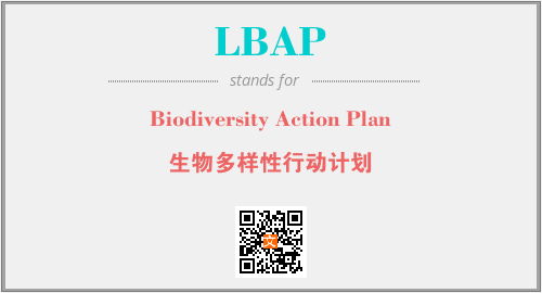 英文缩略词“LBAP”经常作为“Biodiversity Action Plan”的英文缩写来使用,中文表示:“生物多样性行动计划”。本文将详细介绍英文缩写词LBAP所代表英文单词,其对应的中文拼音、详细解释以及在英语中的流行度。此外,还有关于缩略词LBAP的分类、应用领域及相关应用示例等。
