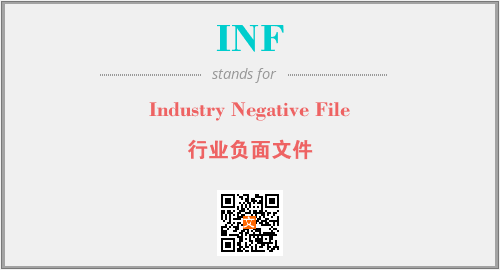 英文缩略词“INF”经常作为“Industry Negative File”的英文缩写来使用,中文表示:“行业负面文件”。本文将详细介绍英文缩写词INF所代表英文单词,其对应的中文拼音、详细解释以及在英语中的流行度。此外,还有关于缩略词INF的分类、应用领域及相关应用示例等。