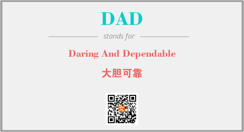 上述内容是“Daring And Dependable”作为“DAD”的缩写,解释为“大胆可靠”时的信息,以及英文缩略词DAD所代表的英文单词,其对应的中文拼音、详细解释以及在英文中的流行度和相关分类、应用领域及应用示例等。