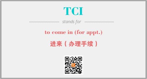 上述内容是“to come in (for appt.)”作为“TCI”的缩写,解释为“进来(办理手续)”时的信息,以及英文缩略词TCI所代表的英文单词,其对应的中文拼音、详细解释以及在英文中的流行度和相关分类、应用领域及应用示例等。