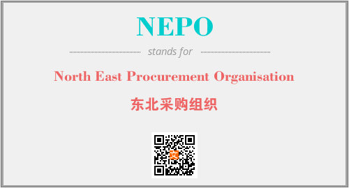 上述内容是“North East Procurement Organisation”作为“NEPO”的缩写,解释为“东北采购组织”时的信息,以及英文缩略词NEPO所代表的英文单词,其对应的中文拼音、详细解释以及在英文中的流行度和相关分类、应用领域及应用示例等。