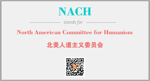 上述内容是“North American Committee for Humanism”作为“NACH”的缩写,解释为“北美人道主义委员会”时的信息,以及英文缩略词NACH所代表的英文单词,其对应的中文拼音、详细解释以及在英文中的流行度和相关分类、应用领域及应用示例等。
