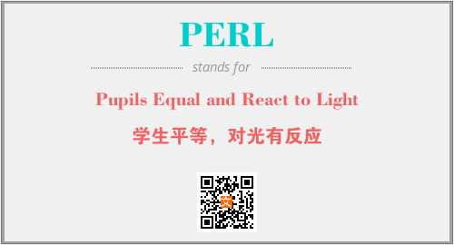 上述内容是“Pupils Equal and React to Light”作为“PERL”的缩写,解释为“学生平等,对光有反应”时的信息,以及英文缩略词PERL所代表的英文单词,其对应的中文拼音、详细解释以及在英文中的流行度和相关分类、应用领域及应用示例等。