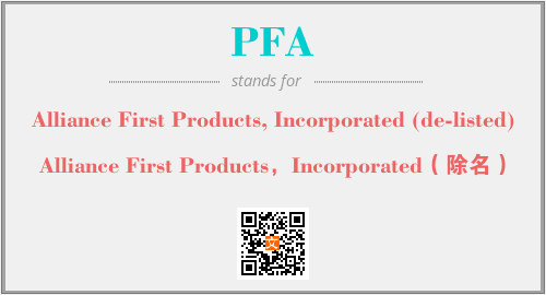 以上为Alliance First Products, Incorporated (de-listed)英文缩略词PFA的中文解释,以及该英文缩写在英语的流行度、分类和应用领域方面的信息。